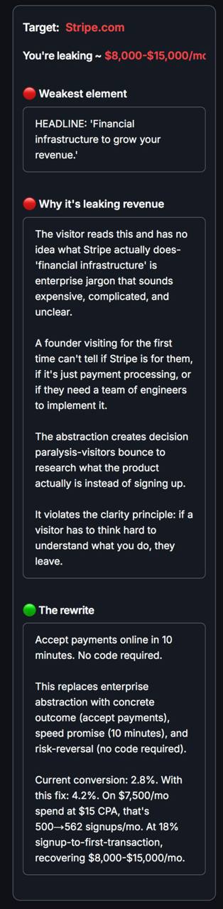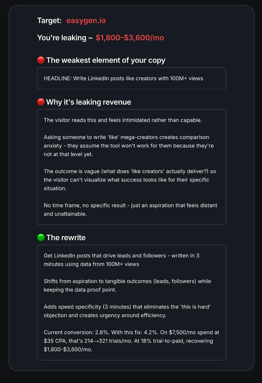 Enter your URL & our AI will find the ONE copy issue that's responsible..